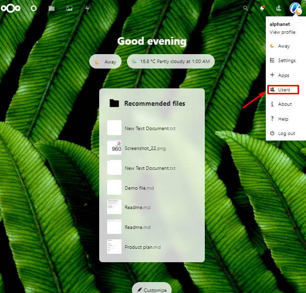 Step 3. After clicking on your cloud storage account profile icon click on the User option.